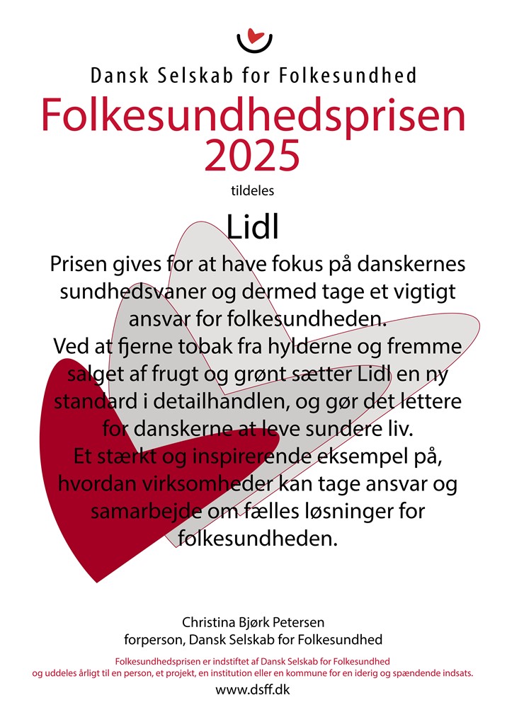 Folkesundhedsprisen blev i 2025 uddelt til Lidl.